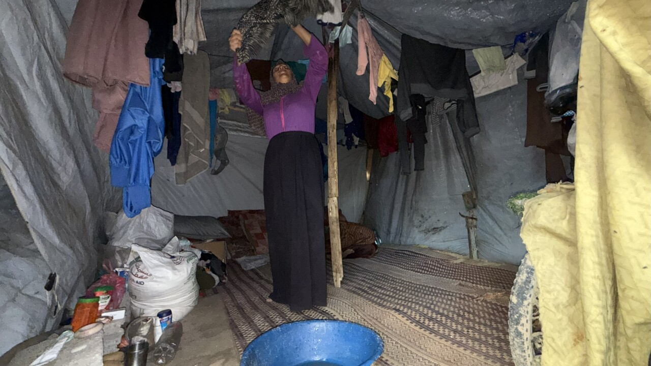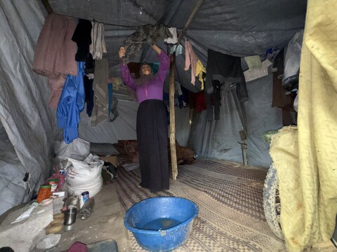 “Every tent is like this,” says Nasra Abu Qainas. “Some families had their tent broken. My son's tent collapsed on him while he was inside. It's unbearable.”